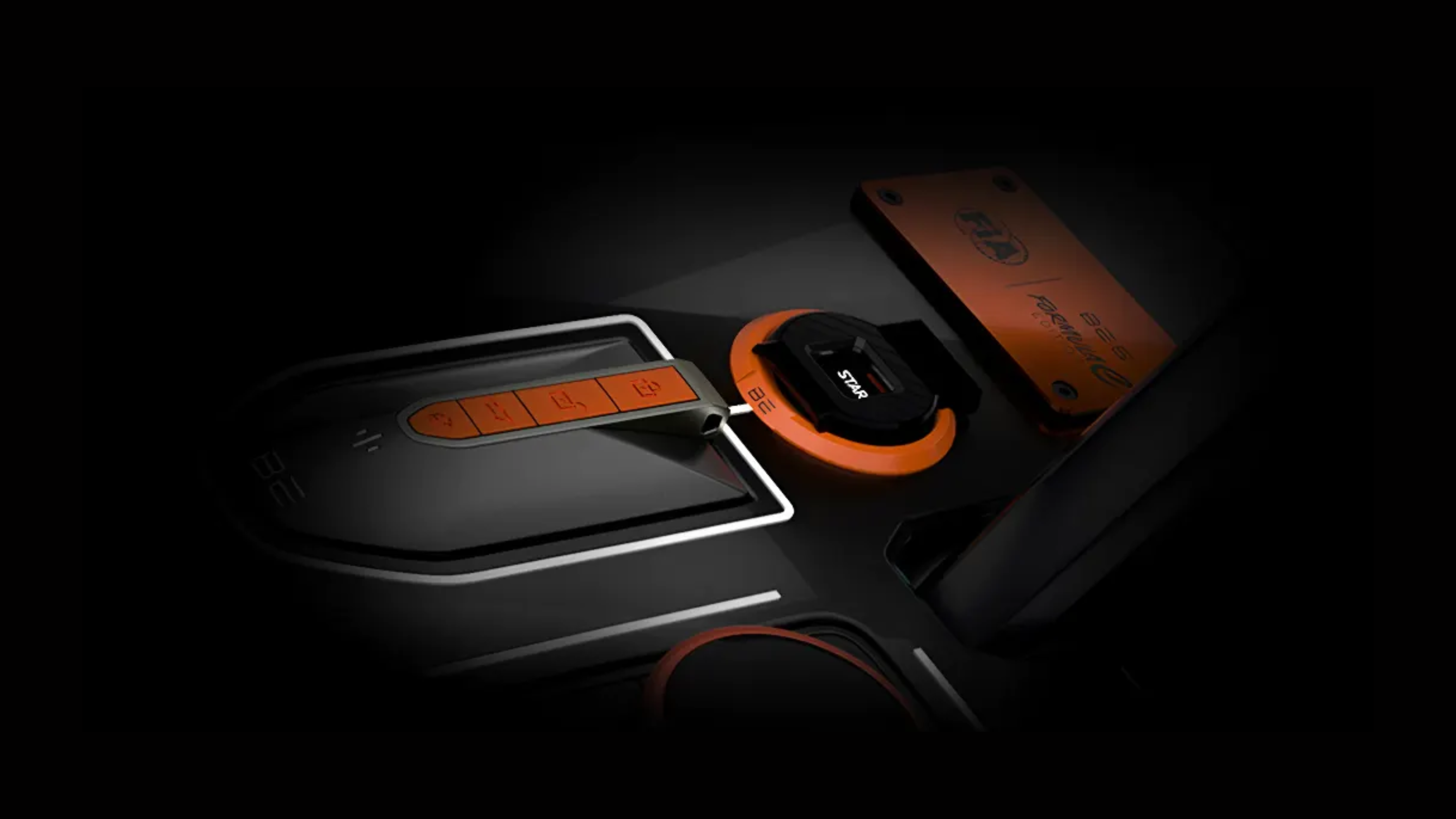 Orange accented Start/Stop button with Flip-cap ignition - start every journey like a race.